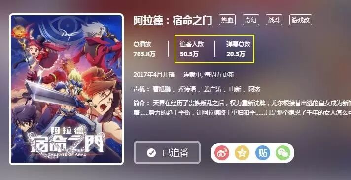 在二次元用户聚集地B站上,《阿拉德:宿命之门》在国漫排行榜上名列前茅,单集动画最高同时观看人数达1.7万,追番数量近50万,弹幕总数超20万。在弹幕评论中,提到最多的也是令人热血沸腾的战斗画面。