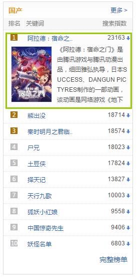 易观发布的《2017年轻人消费趋势数据分析》指出,年轻人在动漫领域的消费共计8168.3万元,月均消费60.3元,集中在动漫影视、手办模型和周边活动等项目。而《狐妖小红娘》的消费金额位列前3。