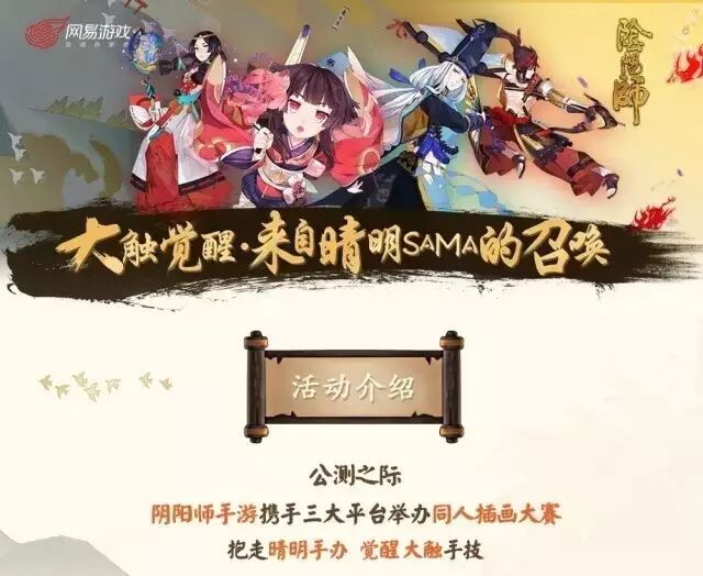 并且,阴阳师也通过活动运营的方式辅助激励这些粉丝二次创作。例如下图中的激励圈内画手的“大触觉醒”活动,与此类似的还有针对视频剪刀手的“映像祭”活动、针对coser的“百魅夜行”大赛。