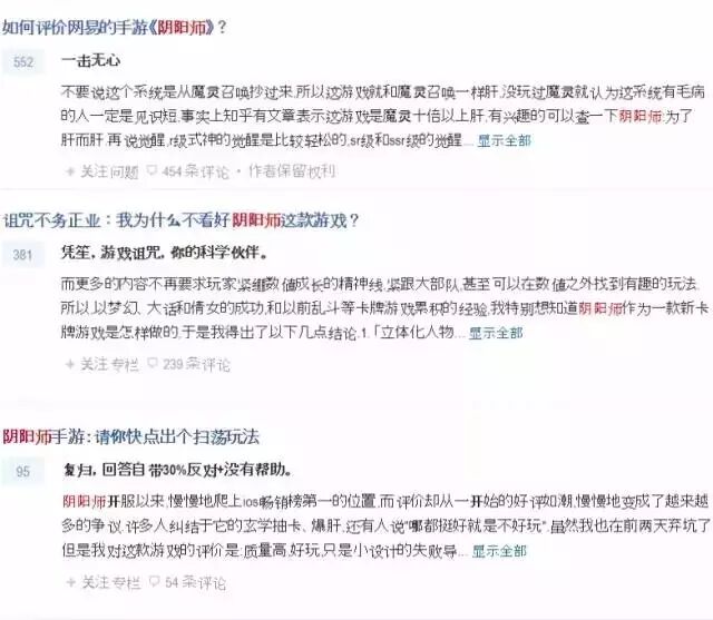 这样的现象在阴阳师上已经有所体现。尽管我周围的小伙伴都对阴阳师赞不绝口,即使是面对某些比较坑的功能也能嬉笑吐槽应对,然而知乎上对阴阳师的态度就没有那么正面了。这些知乎用户往往是手游的资深玩家,直指阴阳师现存的不足之处,言辞犀利,有理有据。