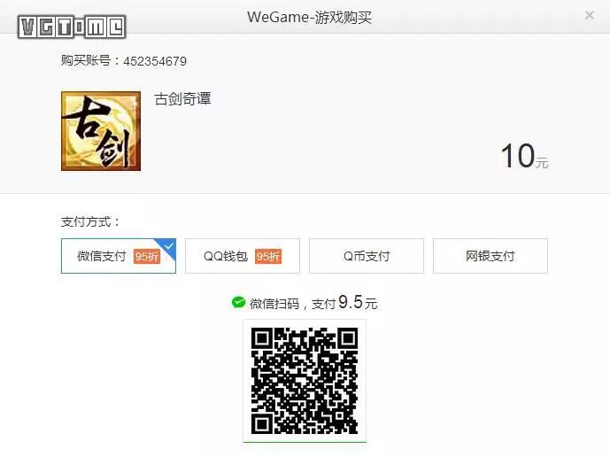 目前WeGame一共有四种支付方式:微信、QQ钱包、Q币支付以及网银支付。目前微信和QQ钱包能够有95折的优惠。