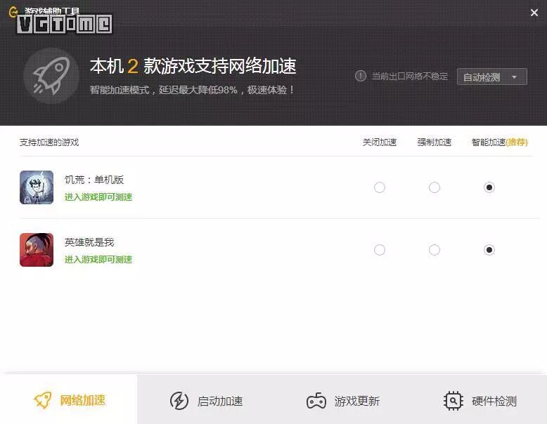 WeGame内置游戏辅助工具。支持对游戏的网络和启动进行加速,通过工具也可以启用游戏自动更新。另外也可以检测当前对特定游戏(也包括尚未发售的游戏)的支持情况。