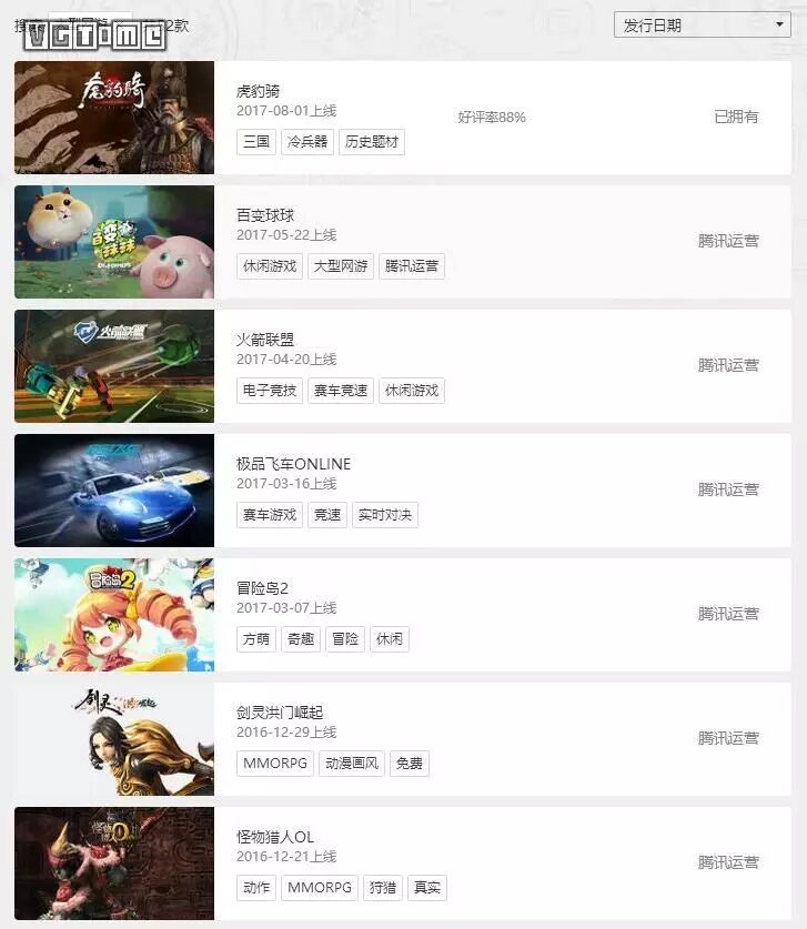 而WeGame商店中的另外一大部分则是网络游戏,其中绝大多数都是腾讯自家运营的网游,如:《英雄联盟》《天涯明月刀》《地下城与勇士》《怪物猎人Online》以及即将上线的《百变球球》《虚幻争霸》《火箭联盟》等。而刚刚上线的《虎豹骑》却并非腾讯运营,或许这也说明了WeGame平台将来上架的网络游戏分类中,不一定全部都是由腾讯运营或代理的作品。