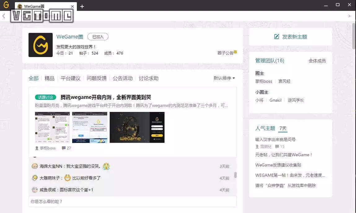 值得一提的是,圈子的管理团队会包括圈主(玩家)、开发者以及官方团队。这也就是说,玩家可以通过圈子将游戏的一些问题和想法直接反馈给游戏的开发者以及WeGame平台方。