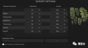 格式我们选择贴图尺寸2K 输出格式TGA