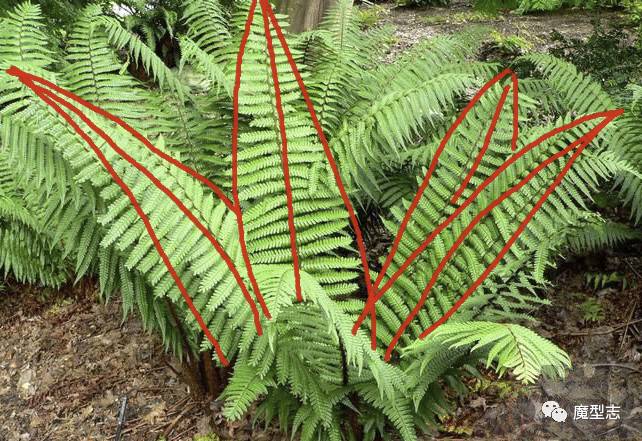 越靠近下面的叶子越大,中间的月子越弧,最上方的叶子越翘