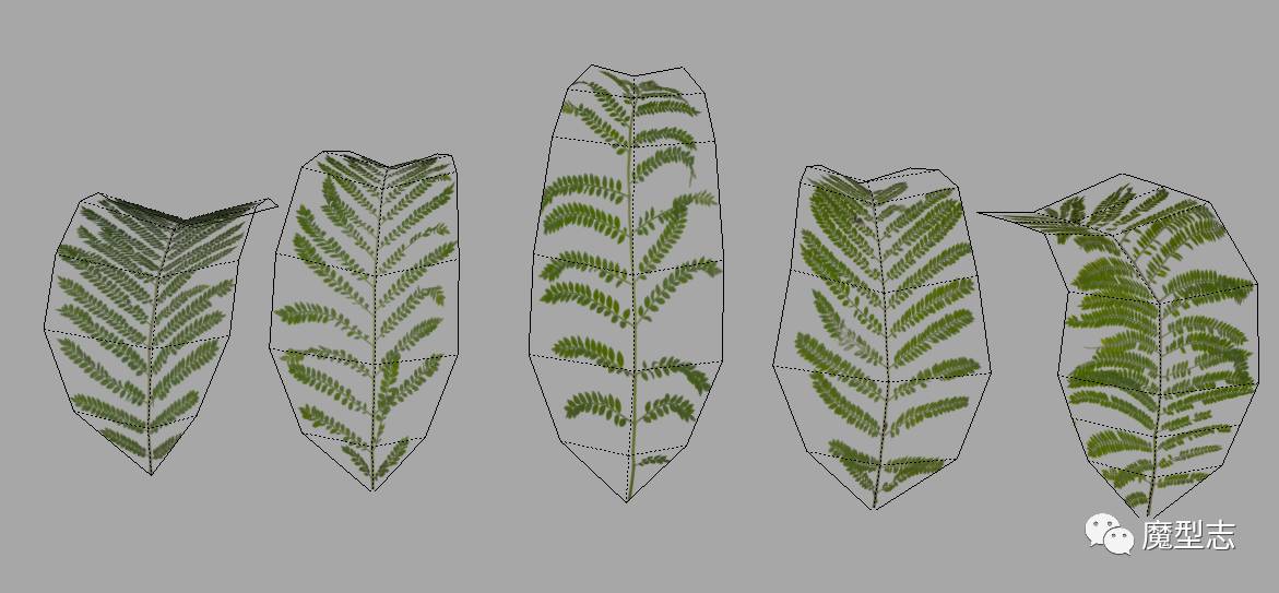 制作初期我们先不要急忙忙地加线,先确定单片叶子的比例大小以及UV和贴图的位置。