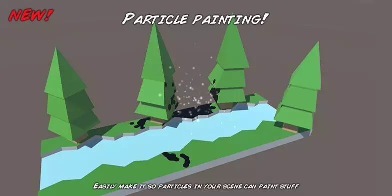 这是一款用于将任意纹理绘制到模型上的插件,支持编辑器模式及运行模式,且能够用于移动平台。Paint in 3D支持所有类型的可读写网格,无需使用碰撞器,支持自定义射线投射器与粒子碰撞,可用于实现一些高级的绘制效果,例如火球、激光、烟雾等。