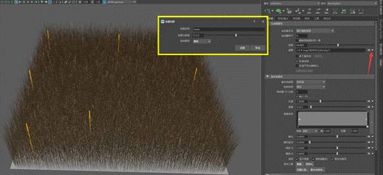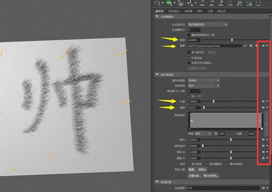 11.这个时候如果我想去控制毛发的生长区域,就需要在遮罩那个地方,红色小箭头后面点击创建贴图,抱歉我这里截不出来.在黄色框内修改属性,一般512的分辨率就够了,1024的分辨率也没影响,看你自己,颜色要说下,在三维图形软件中,黑色等于0就是没有,白色等于1就是有,在这里我选择的黑色,我将控制我想要生长毛发的白色区域