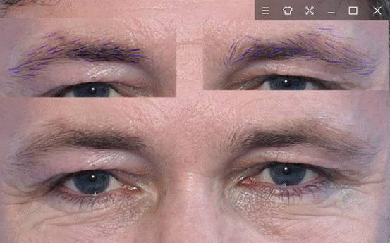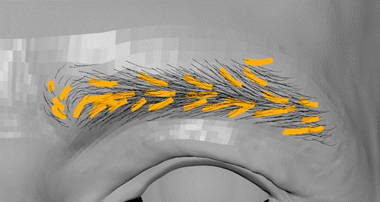 15.现在我要做一个眉毛,找了一张参考图,这里我在ps里面大致画了画眉毛的引导路径,