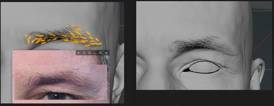 16.在这里,我将生长眉毛那个区域的模型单独复制了出来,经过了一小会的修改造型,先这样,继续修改