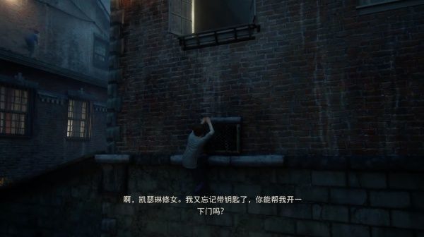 这里注意画面的左上角,当玩家在墙上攀爬时,对面的房檐上会有一个右方角色从左往右跑过去,暗示着玩家的前进路线。