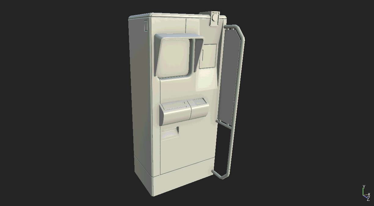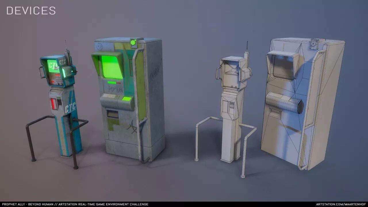 为了让工作变得更加有趣,可以在做主要部分之间穿插着做一些小玩意儿。比如Maarten Hof在做完一个主要部分的时候就做了ATM机的小道具,而这个ATM机将作为其他需要做的道具的参考。如下图所示:
