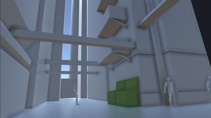 首先,要尽早地确定相机的位置,尝试不同的FOV以及视角。如果能及早地确定相机的设定,就可以尽早确定优化的方向。在进行环境早期设计的时候需要去找一些线条感较强的地方,利用这些线条来为相机构图,如下图所示: