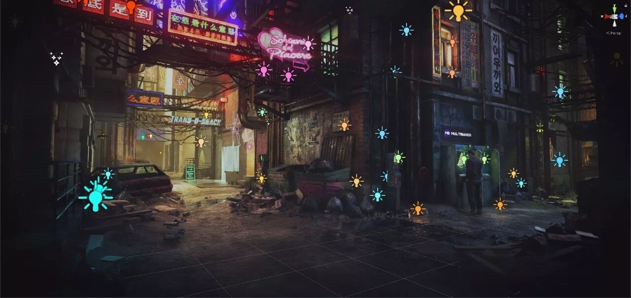 上面这些霓虹灯和各种光源使得场景的整体效果美伦美奂,希望大家可以像Maarten Hof一样,能够使用Unity创建出精美的游戏场景。