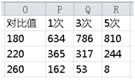 我们发现一个非常明显的趋势,1次平均值的结果超过260的次数是最多的,但超过180的次数是最少的。5次平均值的结果超过260的次数非常少,超过180的次数最多的。
