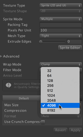 Unity中有很多图像压缩的选择,而UI元素的最佳选择是iOS设备中一个名为“RGB Compressed PVRTC 2 bits”的选项。在《Cubiques立体迷宫》中即便是使用低压缩率,UI看起来也不错。清记住需要根据平台来查看不同的选项。Unity为不同平台提优化供了特殊的选项,它能根据你的平台需要来优化纹理。