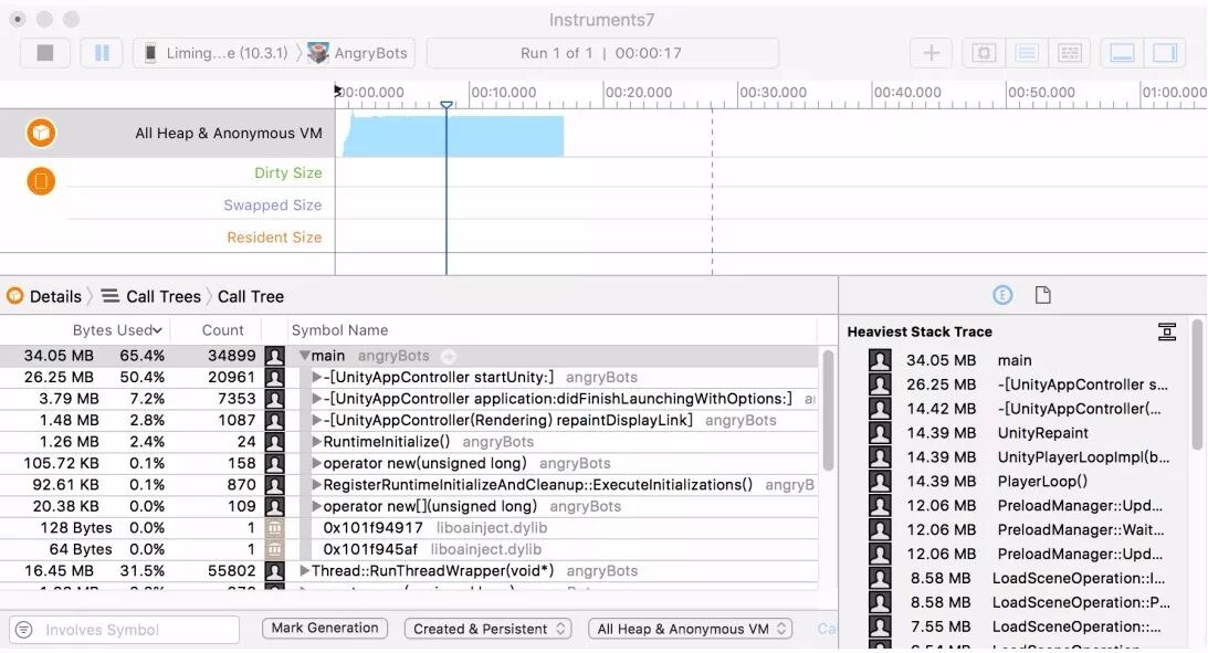 Project Review最主要的工作是使用各种工具来分析项目中存在的性能问题,最长用的工具包括Unity Profiler,Unity Memory Profiler, XCode Instrument. XCode Instrument内又包含了很多工具,其中最常用的有Time Profiler,Allocation以及Capture GPU Frame。