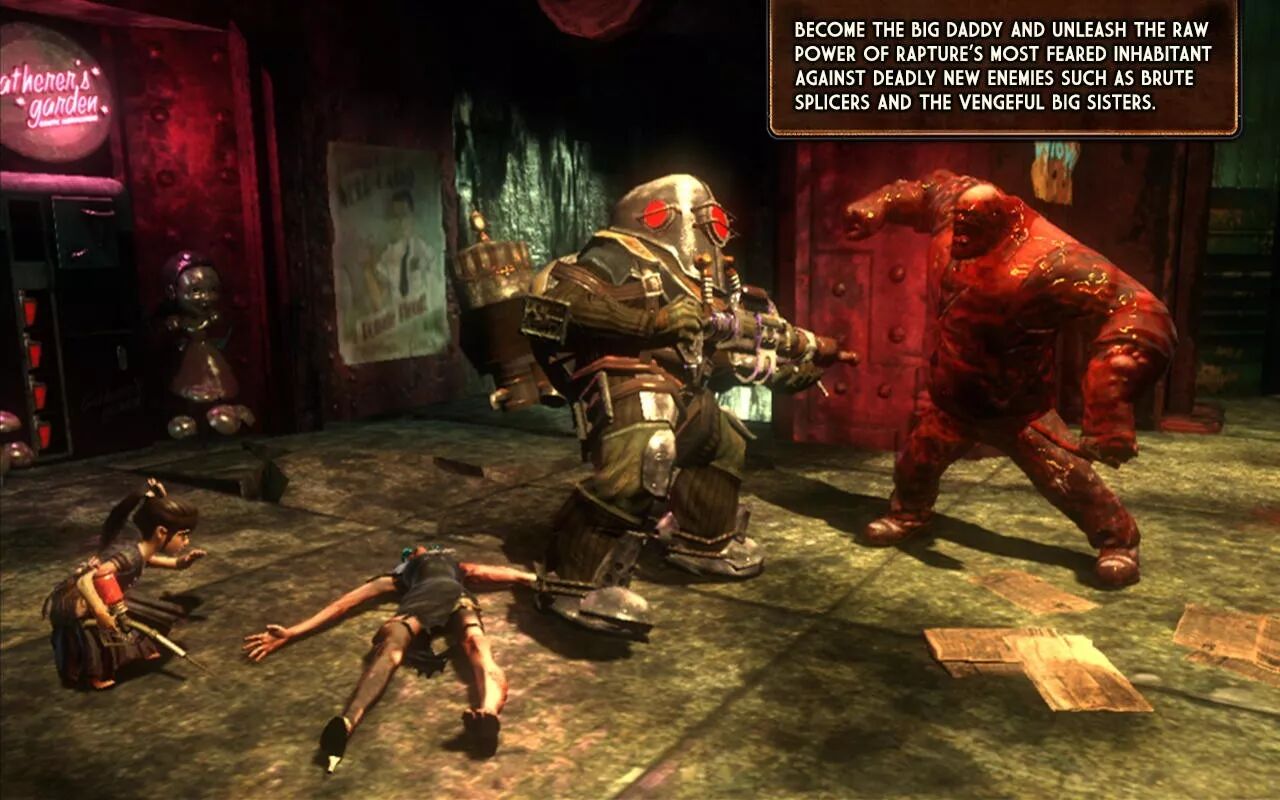 “很多人告诉我们,在他们的世界里,他们决定不杀死Big Daddy。”2K Marin的Thomas说,“这并不是我们一开始设计的结果。这是玩家自己,基于对那些被奴役的人们产生了移情的基础之上,所做出的道德选择。”