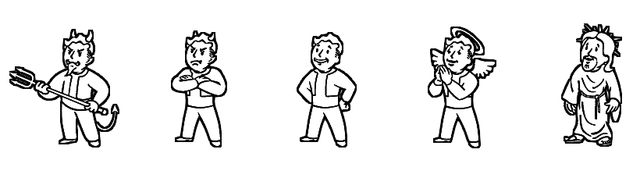 《辐射3》中确实设计有单纯的正义或邪恶路线。玩家可以通过完成一些简单的道德选择来达到系统判定的阈值,或是完成一些成就、被游戏中的某些团体以某一方式对待等等。