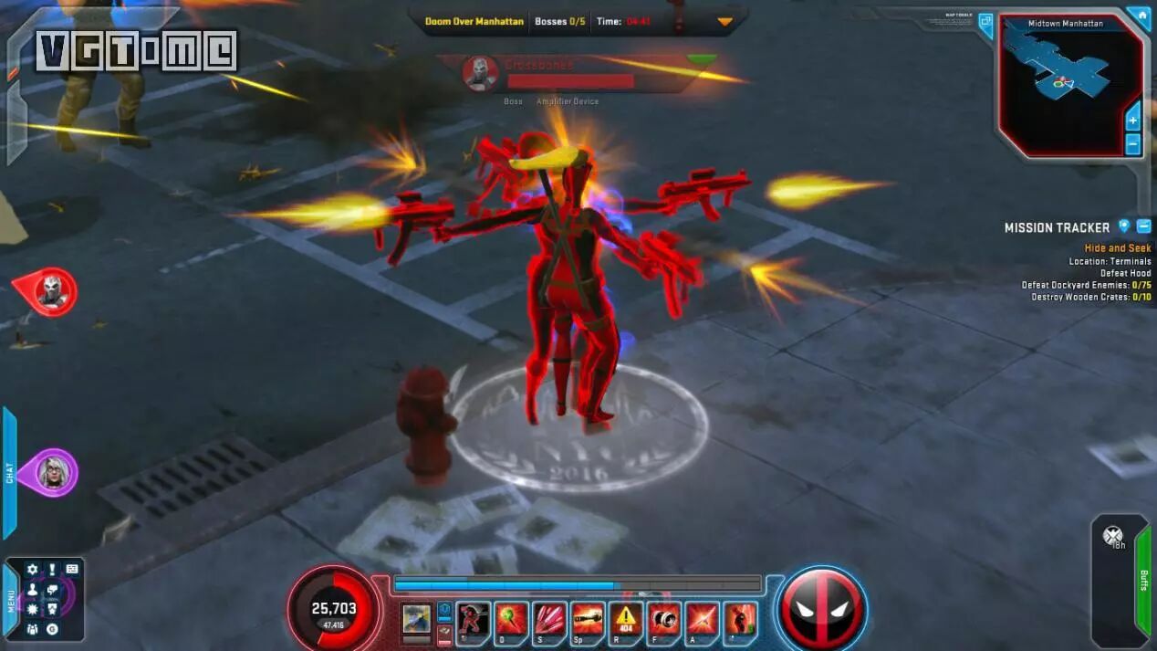 死侍无论在什么游戏都少不了恶搞、嘴炮和打破第四面墙,想不独特亦属难事,在他的技能树就有绿巨人拳头之箭(伴随“Hulk smash!”的音效)、雇佣兵嘴炮、服务器延迟等等诸如此类的奇怪技能,令人莞尔;而白皇后则是跳出了只靠己方输出的常规,她可以使用洗脑技能控制敌人的杂兵,变成自己的忠犬,差不多就是漫威+精灵宝可梦这样的感觉,最大乐趣是满世界抓人;小淘气就更是将原作特色发挥到了极致,她可以向其他玩家或电脑控制的英雄或反派伸手(技能动作真的是伸手),让自身增加一项主动或被动技能,这些上下其手得来的技能多达上百种,所以她的最大乐趣是满世界偷人(误)……