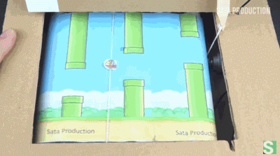 看到这里,你一定会非常佩服作者超强的动手能力。他在Youtube上还创立了名为Sata Production个人频道,里面除了这次的纸箱马力欧之外,还展示了很多纸箱游戏,并附上了非常详细的制作流程,比如大家都很熟悉的《Flappy Bird》和《旋转小鸟》: