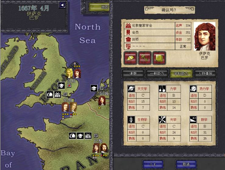 不过,每名科学家都根据其历史建树或成果,对其当时的身份地位、资金声望还有各学科能力高低进行了设定,比如牛顿的力学是S级、光学是A级,但制图能力却只有D;罗伯特·虎克的生物与制图能力都是S,数学方面却是D。