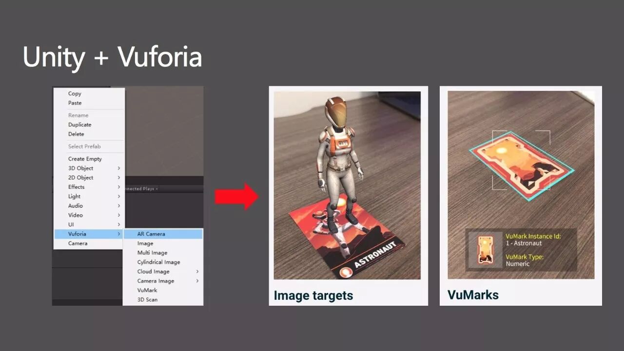 Vuforia有丰富的AR展现形式,在Unity中可以通过GameObject → Vuforia在HoloLens场景中创建您所需要的各种AR设计,从而增强混合现实的体验。