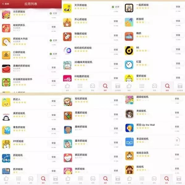 走差异化路线的第二种方式是前文提到过的H5版和Web版线上抓娃娃,这种方式打的是市场化的差异,通过应用产品投放市场的不同争取更多的流量。