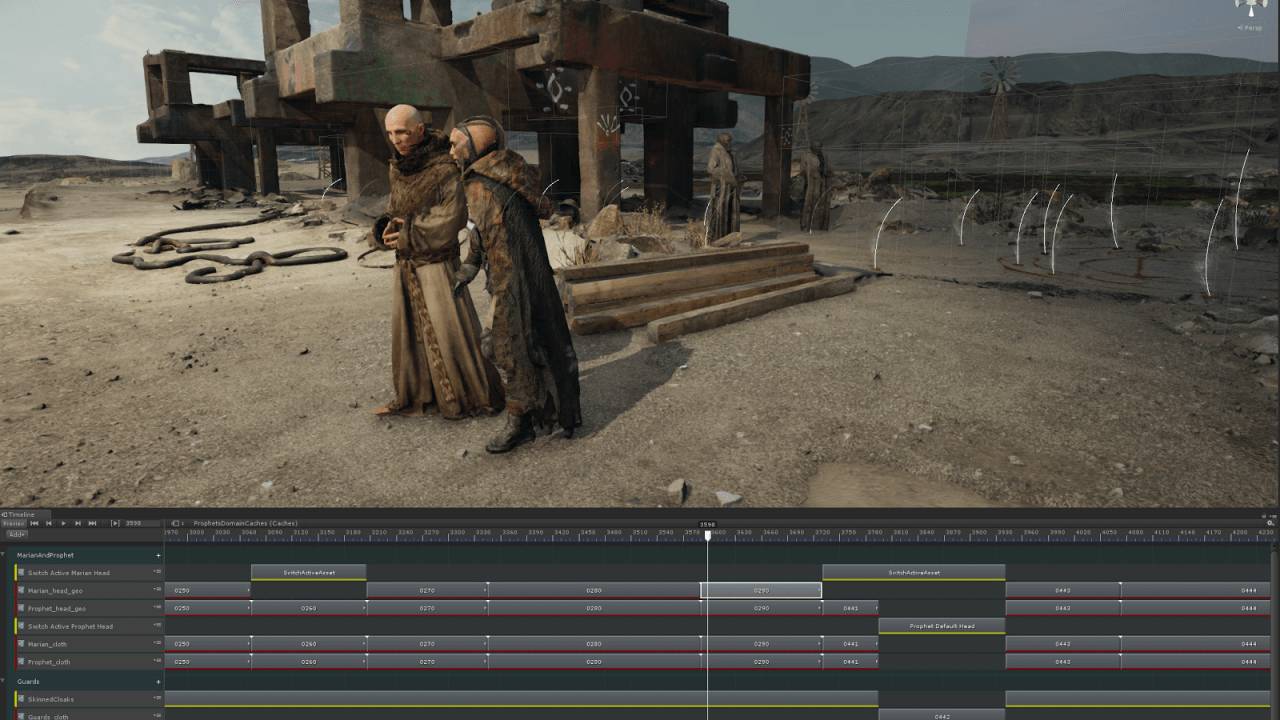 当Oats Studios决定在制作过程中使用Alembic导入器时,还希望有一些额外的功能和优化,以便能处理布料模拟的高视觉保真效果以及实时面部表演捕捉。由于需求与Alembic导入器最初的设计目的差异很大,Unity开发团队在升级这个插件上做出了巨大的努力。