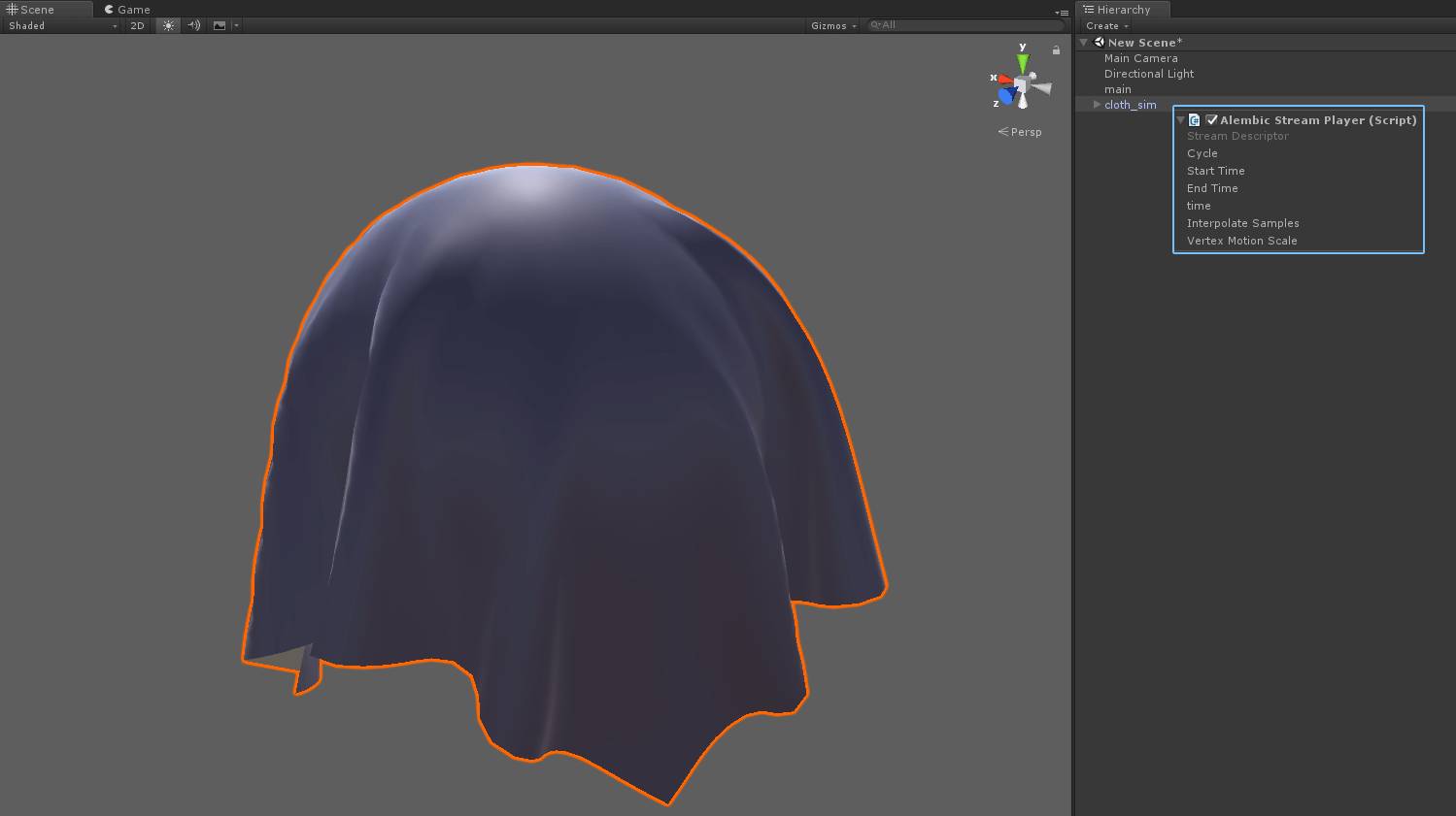 此外我们还实现了好几个对实际生产中有帮助的特性,以平滑生产工作流程。例如Alembic Playable Asset的自动激活,这使Alembic Playable Asset无需在Timeline中添加额外的Activation Track即可激活。Time Scale属性使你可以重新调整Alembic数据的回放时间。Turn Quad Edge属性使你可以选择网格表面三角化的方向。另外还有一个选项可以在Alembic场景对象启用时缓存所有Alembic样本,而无需在回放中缓存数据。