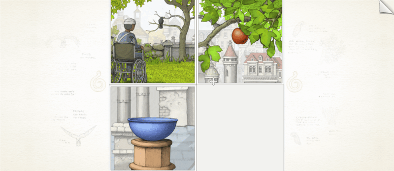 除了场景设计以外,谜题的难度也是 Gorogoa 的制作如此耗时的另一个原因。不少玩家非常喜欢 2012 年的 Demo 里世界观的新鲜感,以及很多迷题给大家带来的惊喜感,可 Jason 很快就发现,这个世界观还有很多可发挥的空间,有些谜题也不需要玩家动脑筋,随机移动面板就可以解开。