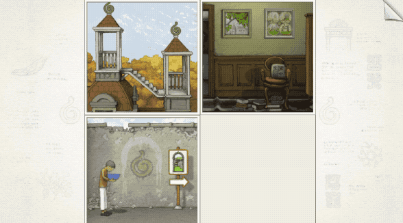 游戏界面被分割成了四个面板,玩家以不同的方式移动、组合会产生不同的效果。有时候,场景中的物体打破了时空的限制,甚至在游戏的不同阶段,可以与不同的环境产生互动,让玩家宛若跌入到二维的埃舍尔迷宫里。
