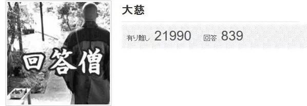其中一位名为“大慈”的和尚贡献了最受欢迎的一个答案,这位大慈法师已经入驻hasunoha两年半了,为839人解答过疑惑,总共获得了21990个感谢,帮助了不少世人渡过苦海。