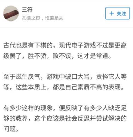 一位名为“三符”的道长看来是个游戏通,他不仅自己玩游戏,还对游戏的价值观有不少深刻的见解。在他心中,电子游戏和下棋无异,只不过更加真实而已。“胜不骄,败不馁,这才是常道。”