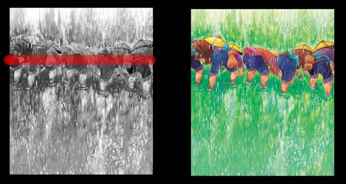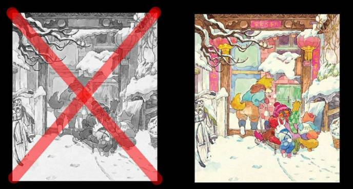 开放式构图:突破了在一个固定的画幅之内完成画面造型的局限,观众对画面的审美思维从封闭式的思维向开放式画外延伸。