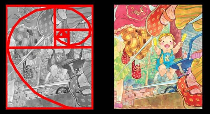 黄金螺旋:在矩形中按照黄金比率无限分割,使最终的点成为视觉中心,眼睛也无意中捕捉到了一条生动的美丽线条。