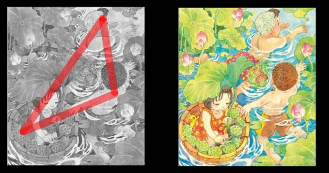 对分式构图:将画面左右或上下分为2:1比例的两部分。其中画面的一部分是主体,另一半是陪体。