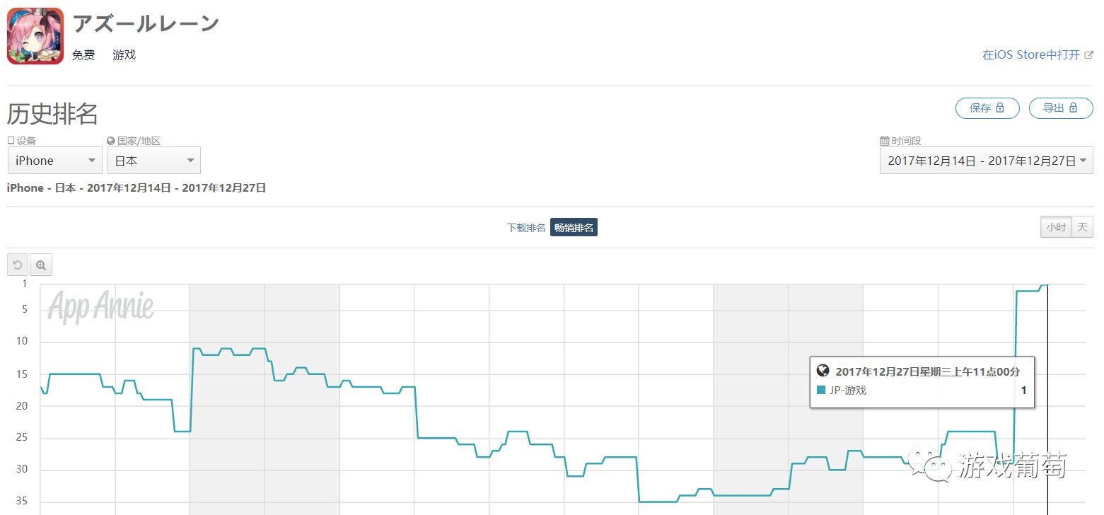 国产二次元手游《碧蓝航线》在日本迎来爆发式的成绩上涨,从昨日畅销第29位上升到今天的畅销第1位。这也是国产手游迄今为止在日本市场取得的最佳成绩。