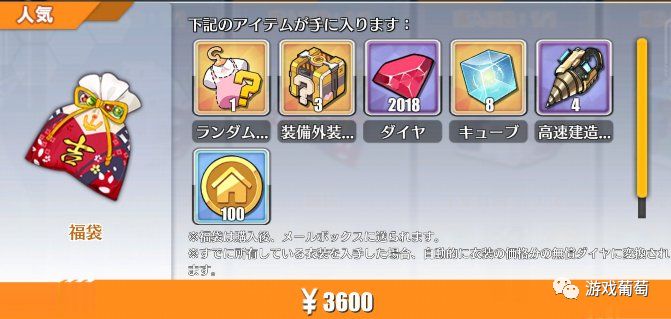 此外,官方推出的福袋中包含了随机皮肤、金装、钻石、建造道具和家具币等总体来说物超所值的内容,对日服玩家来说,这是非常值得购买的。