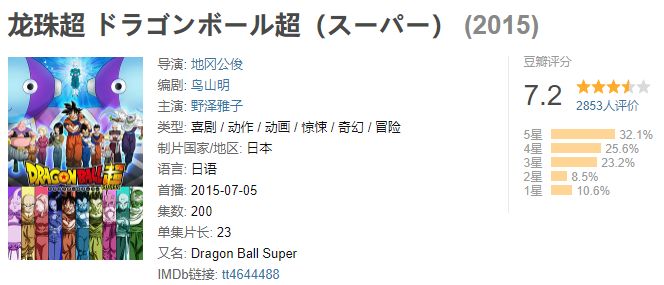 经典之作《龙珠Z》在豆瓣上获得7424人9.3分的成绩