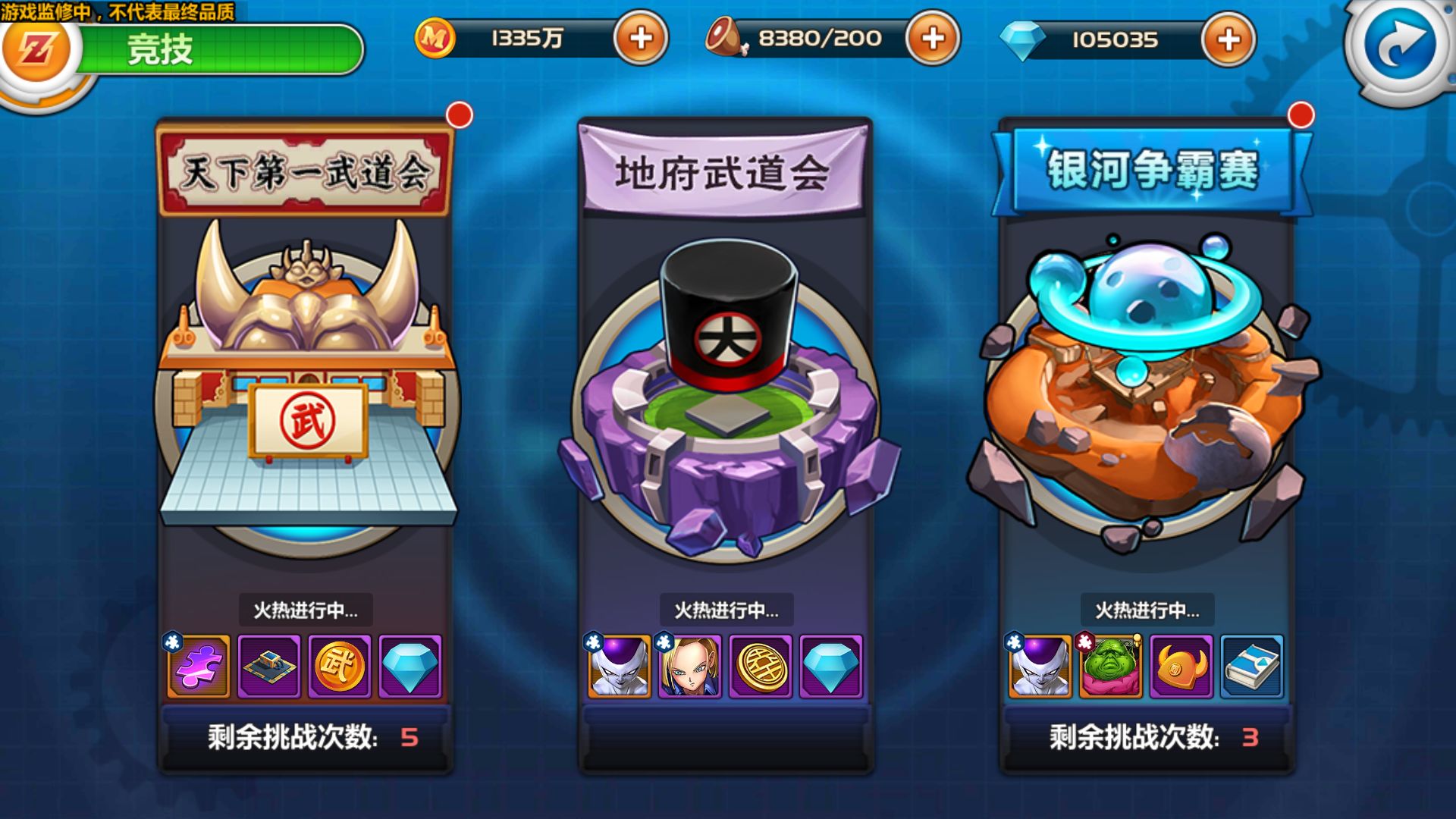 在针对注重竞技性的策略玩家PvP玩法上,本作具备了切合以原作中出现的“天下第一武道会”、“地府武道会”、“银河争霸赛”为主题的三种PvP模式。
