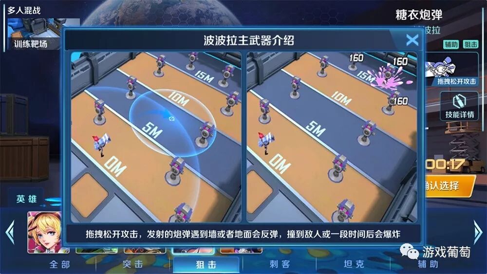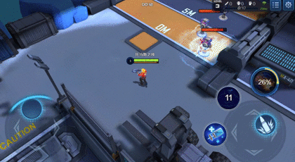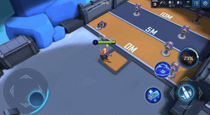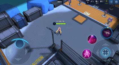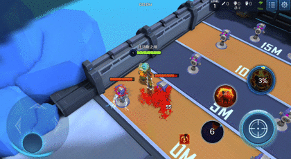它的体验很流畅,手感也不错:左摇杆移动,将右摇杆拖拽到一定方向射击。游戏还提供了轻微的自动锁定,当弹道锁定到目标身上之后,即便拇指还在轻微移动,子弹也都能打到目标身上,这降低了玩家的瞄准门槛。此外,英雄在持续射击一段时间之后,还需要停止射击,自动填充弹药。