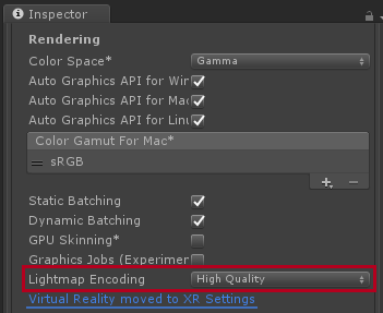 在Player Settings中将Lightmap Encoding选项设置为High Quality,可以轻松启用HDR。
