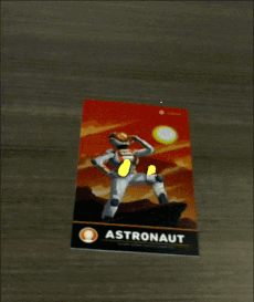 在场景中添加一个Image Target(GameObject Menu >Vuforia>Image), 使内容成为Image Target的一个子对象。打印Editor/Vuforia/ForPrint/ImageTargets/下的Astronaut卡片。点击Play按钮,并使用你的WebCam来观看出现在真实世界中的你的内容。