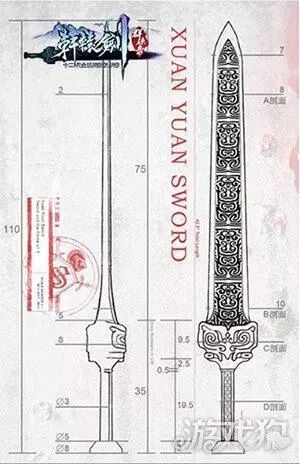 从设计图可以看出,除了各种剖面、尺寸的精确计算外,轩辕剑上的花纹都完美还原