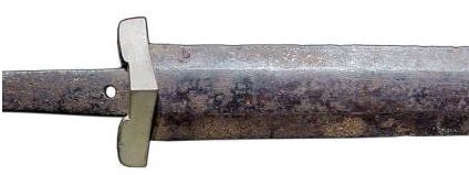 轩辕剑的剑格,不仅仅只是防滑手割伤自己,也可以阻拦剑身入鞘后继续前行的挡头,这样的剑格可以称之为“剑挡”了。这种设置最早可见于西汉的铁剑,如下图: