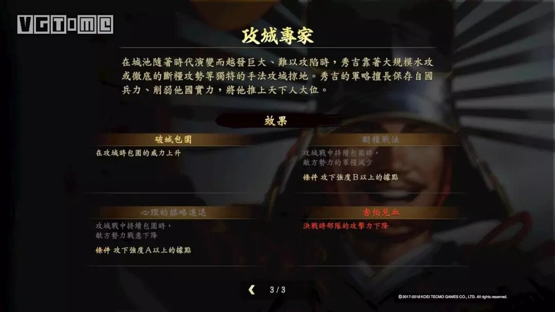 接下来我们再来说说游戏中秀吉的另一项能力“攻城专家”。