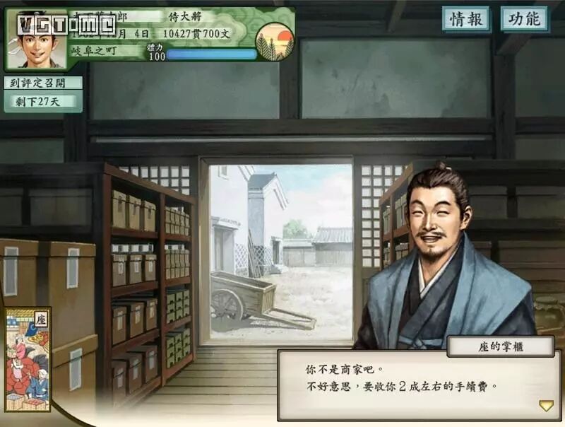 要理解这个词,首先要明白什么是“座”。座者,简单来说就是由当地工商业者组成的行会,早在平安时代末期(12世纪末)就已经出现。座商人通过向公家、寺社缴纳地子钱(地租)、冥加金(营业税),获得商品交易的独占权。根据销售商品的类别不同,座又可以分为油座、米座、唐人座(进口商品销售)等等,所以实际上,在同为光荣出品的《太阁立志传5》(以下简称《太阁5》)中,玩家在一个座里能买到各种不同的商品是不符合现实的。