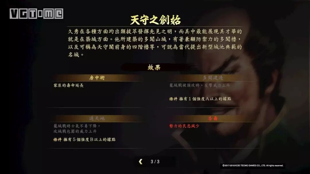 当然了,久秀能让信长一忍再忍,说明他也确实有两把刷子。游戏中的另一个特性“天守的创始”,说的便是他高超的筑城技术。